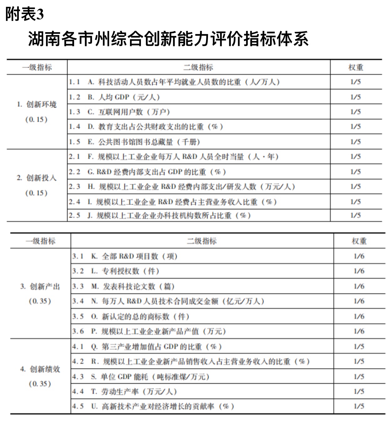湖南省14个市州的综合创新能力如何?湖南创新发展研究院结合各市州具体情况(见附表3),运用主成分分析法计算各市州的得分进行排名,得出各市州的综合创新能力评价结果如下:位于前三甲的是长沙、株洲和湘潭,余下排名依次为岳阳、娄底、衡阳、郴州、益阳、常德、永州、怀化、邵阳、张家界和湘西自治州。(见附表4)
