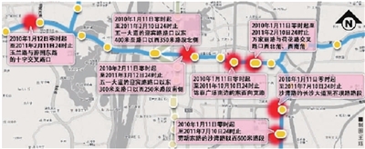 管制时间最长的路段将持续到2011年10月,提醒市民合理安排出行路线。