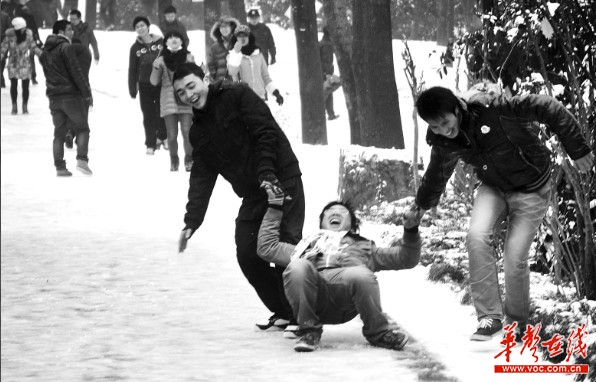老头老太太望着雪很发愁,出门怕路滑摔伤,只得少出门;孩子们走路小心翼翼,一不小心就会摔个四脚朝天;就是年轻人也在埋怨,路上半融化的雪水已漫过鞋底,鞋袜湿了,走路又滑又冷。