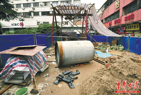 今年3月,经老乡王春艳介绍,伍垂金和伍美军等4人来到湘潭。他们和负责煮饭的王春艳及一名同乡工友组成了“施工小分队”,分两班在人防工程的施工方——陕西华阳公司麾下进行地下排污管道的施工。