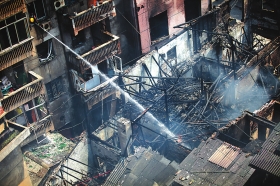 芦淞区建宁街发生大火,6月1日,消防用水枪将最后的火苗扑灭。 《长株潭报》记者金林摄