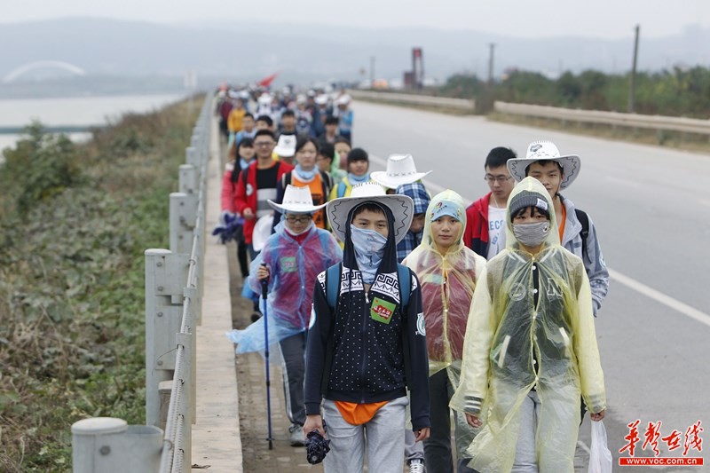 虽然天空时而下起阵雨,但大部分毅行者依然坚定前行。“平时别人说我弱不禁风,这次来就是要证明自己。”来自中南林业科技大学的吴凡坦言,她平时运动不多也比较懒,总是找借口不运动,这次是下了决心来的。