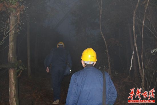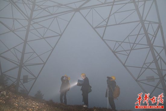 1月5日早上6点25分,天色如墨,大地还未苏醒,几声狗吠划破乡村的宁静。在位于望城区桥驿镇和丰村神仙岭组的黑麋峰山脚下,一束光,照亮了湖南省送变电工程公司员工蔡荣和他的伙伴们脚下的山路。今天,他们要赶在晨雾散开前,对黑麋峰山上的±800千伏宾金线1883号杆塔进行防污特巡。