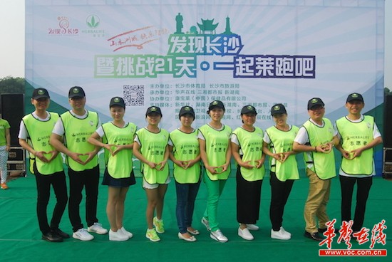 华声在线5月14日讯(记者 蔡奥)14日上午9点,由长沙市体育局、长沙市旅游局主办,康宝莱(中国)保健品有限公司、新湖南新闻客户端、三湘都市报协办,华声在线承办,发现长沙暨“挑战21天•一起莱跑吧”活动在橘子洲景区上演。康宝莱(中国)保健品有限公司湖南分公司外事经理张泉致辞,长沙市体育局党组成员、工会主席钟国林宣布活动启动。本次活动由长沙市体育局、长沙市旅游局主办,康宝莱(中国)保健品有限公司、新湖南新闻客户端、三湘都市报协办,华声在线承办。当天活动共吸引近500人参加。