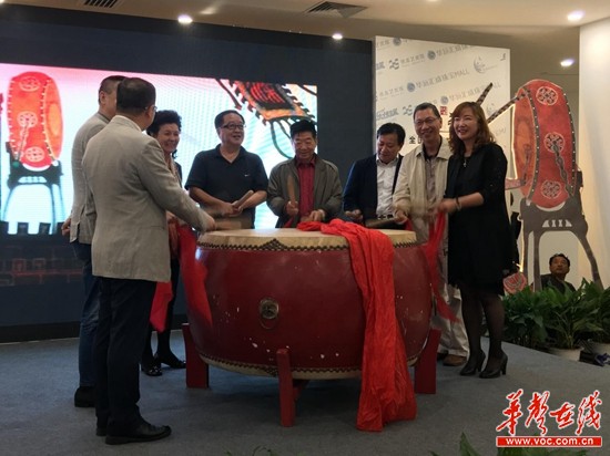 中国木偶皮影艺术学会会长李延年、中国木偶皮影艺术学会副会长唐大玉、湖南省文化艺术基金会主席肖雅瑜、省文化厅副厅长鄢福初等嘉宾敲响开锣鼓。