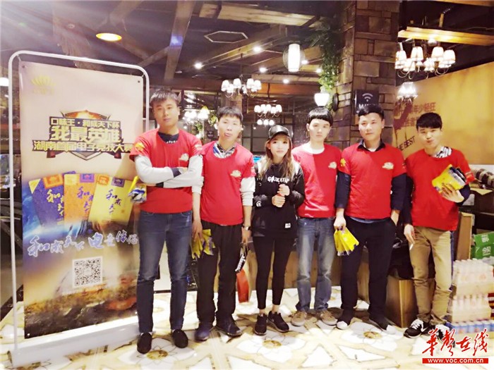 获得周冠军的选手拿着主办方口味王集团提供的奖品——和成天下槟榔合影留念。