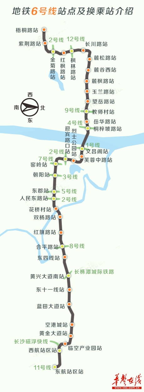 长沙地铁6号线站点及换乘站 ■制图/王珏