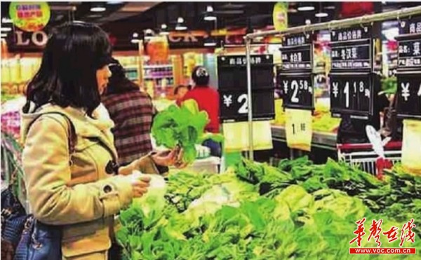 今年肉类和蔬菜价格涨势颇猛,不少市民特意到超市买特价蔬菜。