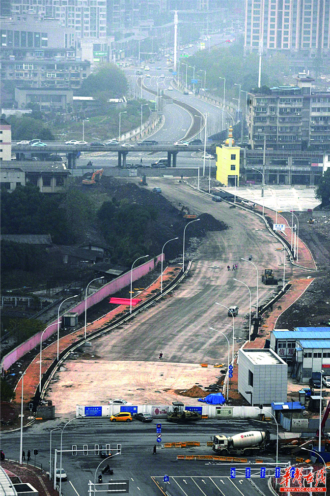 12月15日,正在修建的长沙市黄兴北路开福寺路段。近日,长沙市黄兴北路开福寺路至三一大道段300余米已启动建设。预计2017年1月路面可完工并放开通行。 傅聪 摄
