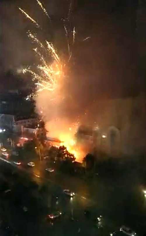 @岳阳消防 1月24日消息,1月24日21时08分许,岳阳消防支队指挥中心接到报警称:岳阳市经开区中南大市场鞭炮仓库发生火灾,起火建筑为4层商住楼,1楼为门面,2-4楼为住宅,有人员被困。