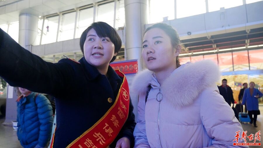 刘瀞徽给旅客指引候车区域。