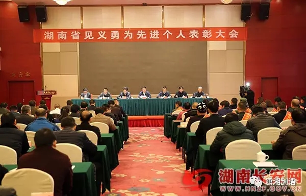 12月30日,全省见义勇为先进个人表彰大会在长沙召开,大力弘扬见义勇为精神,激励全省人民更加关心、支持和参与见义勇为事业,开创我省见义勇为工作新局面。黄关春出席会议并讲话,田福德同志主持会议。会议对2015年度全省29名见义勇为先进典型人物进行表彰奖励,对部分困难见义勇为人员进行了慰问。经我省推荐,衡阳曹承全、怀化张德雄二人还被评为全国见义勇为模范。