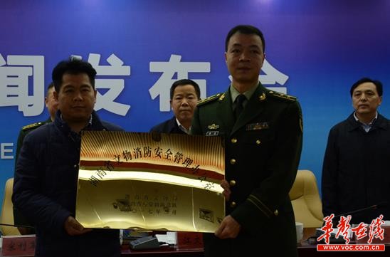 省公安消防总队、省文物局共同授予“湖南省文物消防安全管理办公室”牌匾,开全国先河,这标志着我省文物消防安全管理联合工作机制正式建立。
