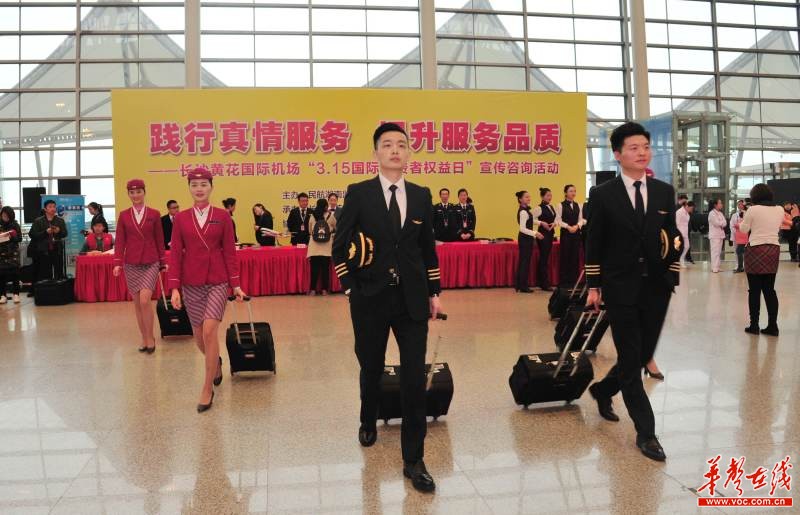 上午9点,南航湖南分公司的帅气机长、靓丽空姐在一曲欢快的音乐声中闪亮登场,以T台秀的方式拉开了活动的序幕。长沙黄花机场分公司等单位准备的吉他弹唱《I Am Yours》、个人独唱《乌苏里船歌》等精彩节目也让许多旅客拿出手机,记录下这一特别的“3.15国际消费者权益日”。