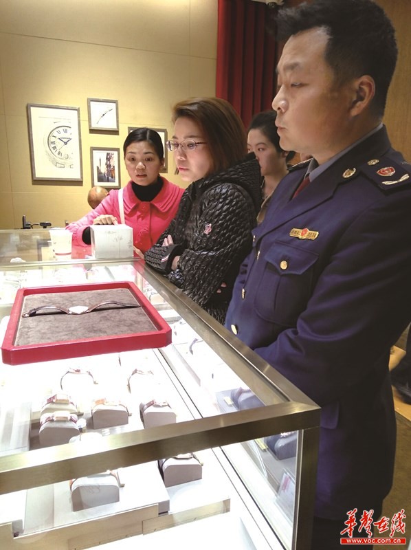 3月13日下午,坡子街工商所工作人员来到卡地亚专柜,执法人员要求柜台提供详细的产品合格证和检测报告,柜台人员表示,合格证和检测报告在总部,稍后可详细提供。执法人员表示,进一步调查了解后,将依法依规处理,如牵涉产品质量不合格,将协调商家进行退货,并赔偿消费者误工费、交通费、鉴定费等费用。