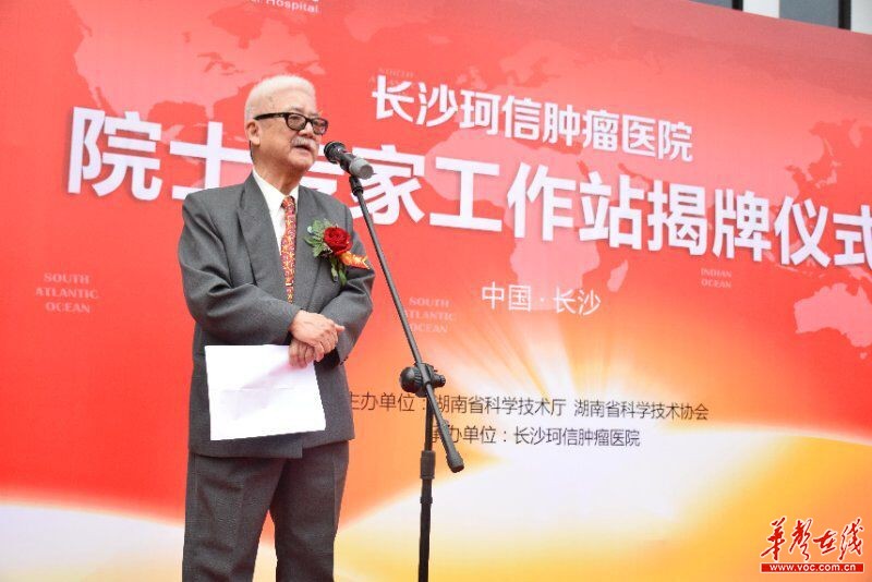 华声在线4月8日讯(记者 李昆励 通讯员 罗浩)今天上午,湖南省首个肿瘤医学领域院士专家工作站在长沙珂信肿瘤医院挂牌成立。中国科学院院士姚开泰,湖南省科协副书记、副主席王玉立,湖南省科技厅人事处主任刘晓熹,湖南省卫计委科教处处长范珍贤,长沙市卫计委副主任刘激扬,湖南珂信健康发展有限公司总裁陈历宏共同为院士专家工作站揭牌。