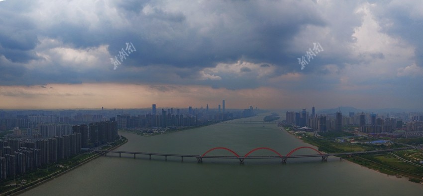 5月11日16时30分左右,长沙市城北湘江两岸,乌云密布,一场风暴雨蓄势待发。根据湖南气象网11日下午4点41分的消息:昨天(10日)南方新一轮降雨拉开序幕,今天不少地区的天气都变了画风,雨水开始攻城略地,像是湖南,午后,湘西北、湘北出现了明显的降温降水。这轮过程有些暴脾气,降雨激烈,并且,还将伴有短时强降水、雷暴大风等强对流天气,提醒注意防范。省气象台预计,今天夜间将是此轮过程的最强时段,今晚到明天白天,湘西州、张家界、常德阴天转多云,其他地区多云间阴天有中等阵雨或雷阵雨,其中长沙、岳阳、湘潭、邵阳、怀化南部、株洲北部局地大到暴雨;明晚到后天,湘东南阵雨转多云,其他多云到晴天,部分地区早晨有雾。记者 童迪 摄