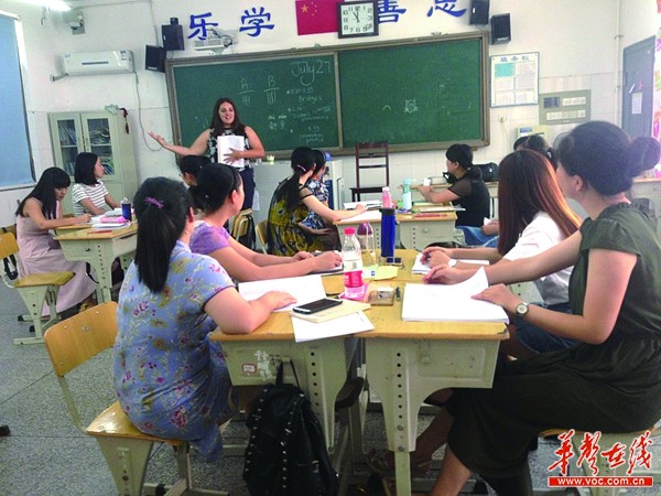 7月27日,长沙市长铁一中,来自美国的老师在对我省的英语教师进行培训。 黄京 摄