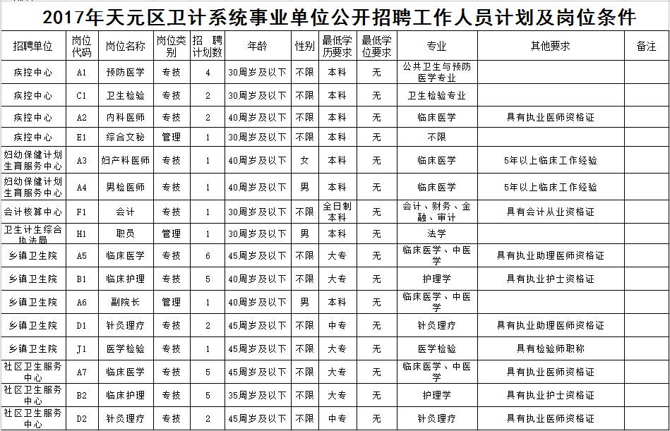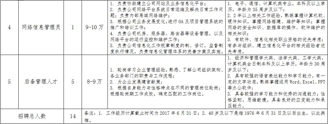 招聘岗位条件、数量