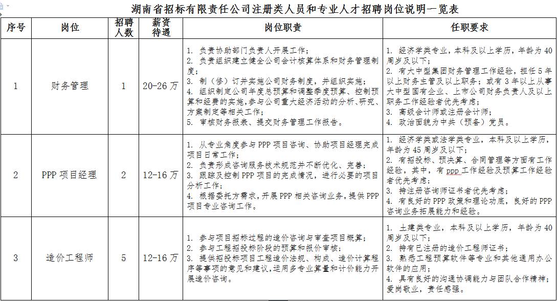 湖南省招标有限责任公司招聘14名注册类人员和专业人才简章