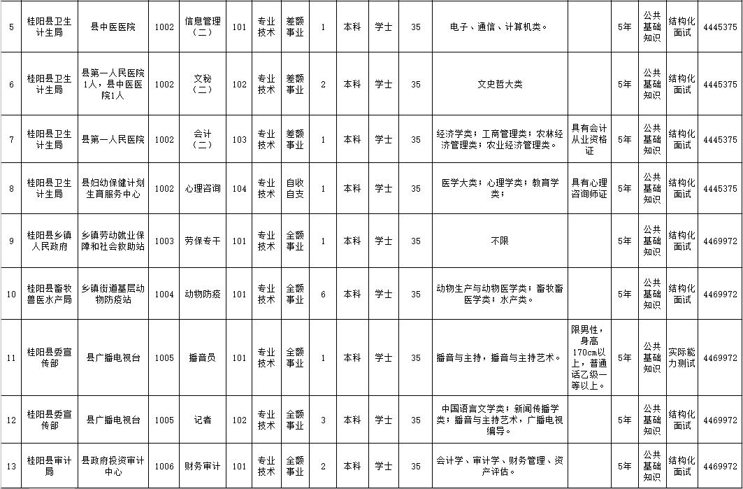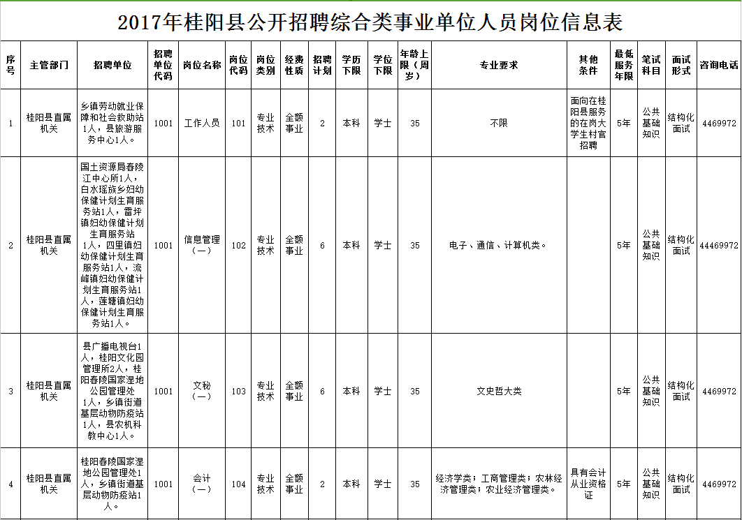 桂阳县人社局事业单位人事管理股:0735-4469972