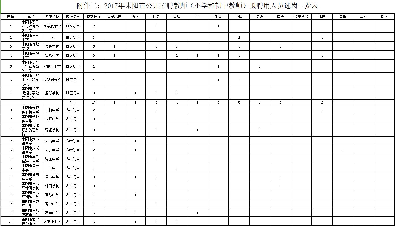 耒阳市在编教师和特岗教师不得报名应聘。