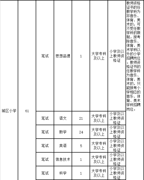 ③小学教师岗位的笔试内容为公共知识和专业知识,公共知识为教育学、心理学,占10%,专业知识为小学语数综合知识,占90%。