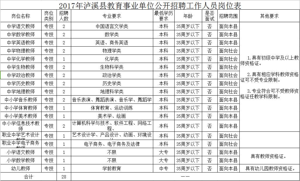 2017年湘西泸溪县教育事业单位公开招聘28名工作人员方案