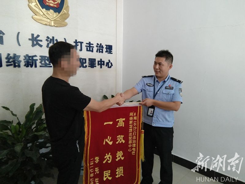 (7月25日,李先生给湖南反电诈中心送来锦旗,以示感谢。)