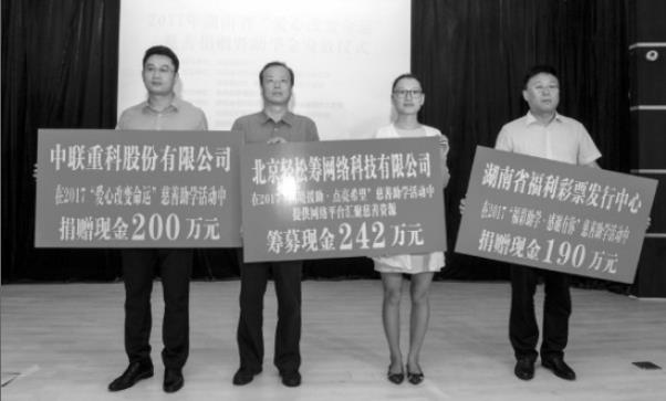“爱心改变命运”慈善助学活动由湖南省慈善总会联合中联重科、潇湘晨报、湖南经视发起和实施,于2003年开始,一年一度,今年是第15个年头。通过“爱心改变命运”活动全省慈善会系统共募集善款1.5多亿元,捐赠善款用于全省慈善助学活动,帮扶40000多名贫困大学新生顺利入学。