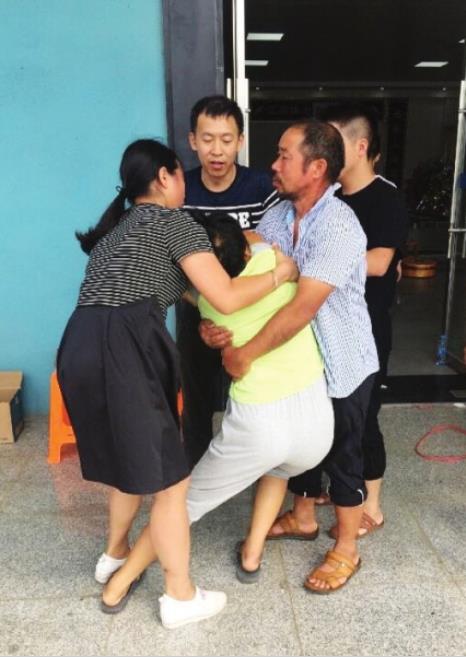 8月8日,江西九江都昌县殡仪馆,刘建广的母亲无法接受儿子去世的事实昏厥过去,身旁的家人急忙搀扶。受访者供图