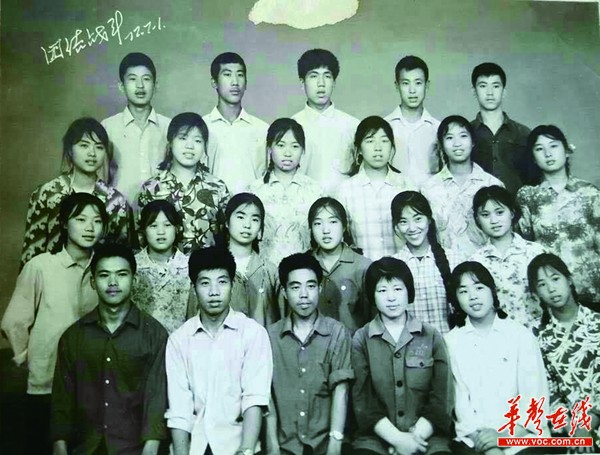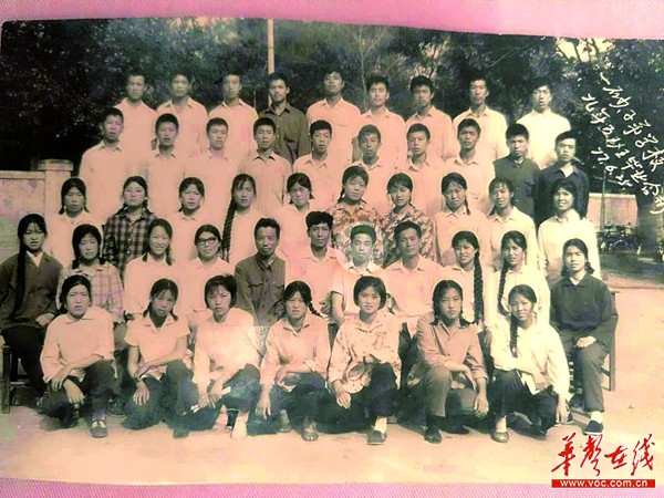 教师节前夕,张先生从千里之外的沈阳打来求助电话,要寻找失联40年的初中班主任邓振球老师。第二排右数第5人即邓振球老师。 (张先生供图)