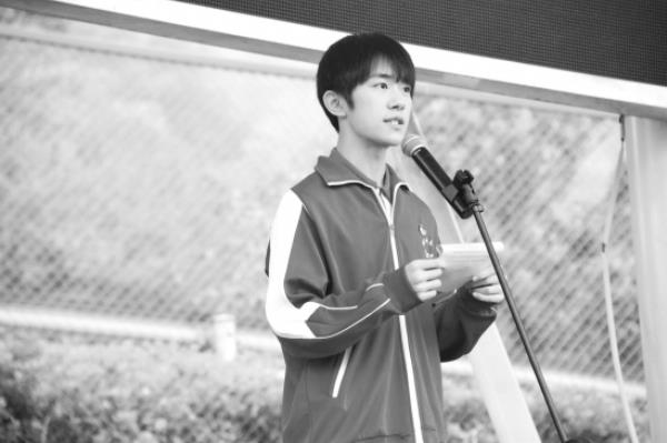 易烊千玺代表高三学生在湖南师大附中梅溪湖中学开学典礼上发言。