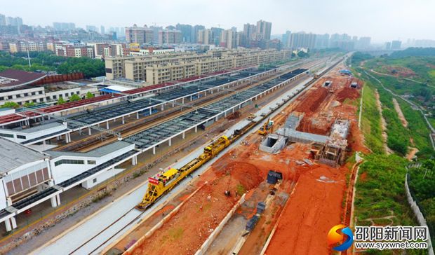 据工作人员介绍,现在每天以2.5公里的速度向怀化铺进。截至目前,邵阳往东铺轨已进入衡阳境内,完成了90%,有望2017年9月底完成;邵阳至怀化段为397.71公里(双线)铺轨任务,将于2018年2月完成。