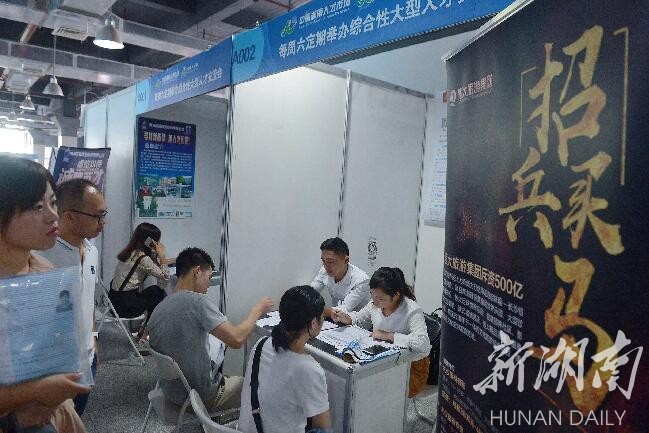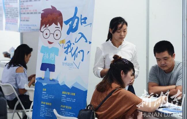 9月2日,中国湖南人才市场上,求职者在2017秋季大型招聘会上挑选岗位。当天,由省人力资源保障厅主办,中国湖南人才市场承办的2017年“相约初秋”秋季大型公益人才招聘会在长沙举行。