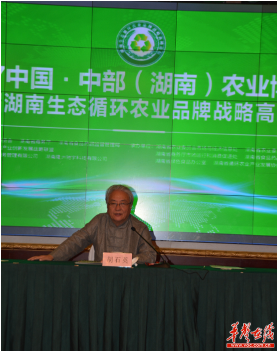 华声在线长沙讯(记者 袁仲贤 彭天思)11月19日,2017中国中部(湖南)农业博览会暨首届湖南生态循环农业品牌战略高峰论坛在长沙召开。联合国生态综合体理论提出者,功勋授予者、国际绿色产业合作组织执行主席、中国循环农业产业创新发展战略联盟主席胡石英,前国务院参事室副主任、研究员、农业政策专家田桥、湖南省循环农业产业发展协会会长、原湖南省农业厅总农艺师、巡视员青先国、湖南省农业委员会党组成员、总农艺师唐建初,湖南省食品药品监督管理局党组成员、副局长吴公平等出席了此次活动。