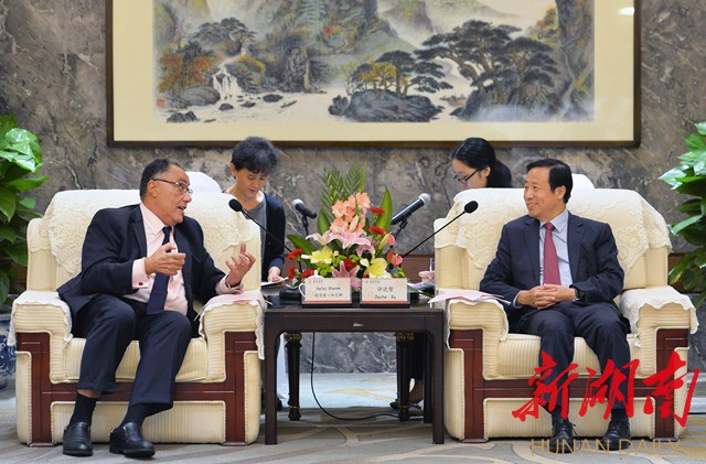 许达哲对客人的到来表示欢迎,感谢世界银行及财政部长期以来对湖南的关心支持,并介绍了湖南经济社会发展和湘非合作情况。他说,湖南是新中国缔造者毛泽东主席的家乡,人文荟萃、文化灿烂,环境优美、名胜众多,农业发达、资源丰富,区位优越、交通便捷,今年上半年,全省经济形势继续保持稳中向好、总体平稳的势头。当前,湖南按照习近平主席要求,积极响应国家“一带一路”倡议,充分发挥“一带一部”区位优势,大力实施中部崛起战略、乡村振兴战略和创新引领开放崛起战略,加快“五个强省”建设,致力推动高质量发展,打好三大攻坚战,全力打造全方位对外开放新格局,建设创新型省份。湖南是农业大省、制造大省、科教大省,在现代种业、工程机械、装备制造、节能环保、医疗卫生等方面具有较强实力和优势,希望世界银行、财政部在以往与湖南成功合作的基础上,继续帮助我们讲好“湖南故事”,在推动项目落地、引进全球先进经验和技术、培养国际型复合型人才以及外经贸发展、多边国际金融组织合作、海关关税等方面加大支持力度,加快湖南优势产业“走出去”步伐,为打造新时代更加紧密的中非命运共同体贡献力量。