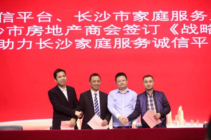 活动现场,长沙市家庭服务业协会、长沙市家居协会、长沙市房地产商会签订《战略合作协议》,共同打造长沙家庭服务诚信平台。