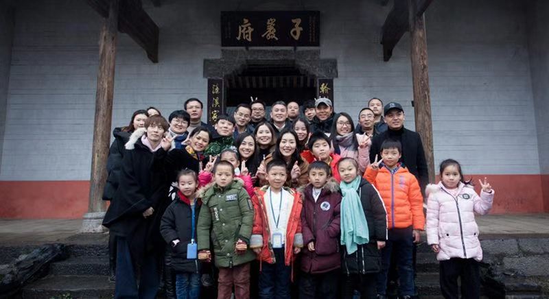 刘雯与参加宣传片拍摄的演职人员一起合影。