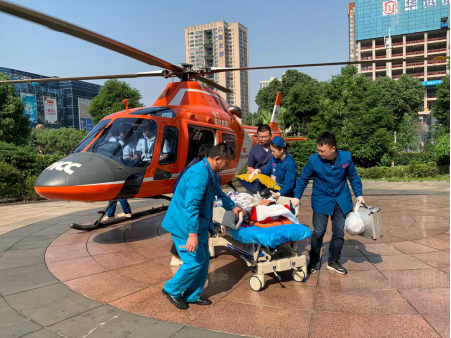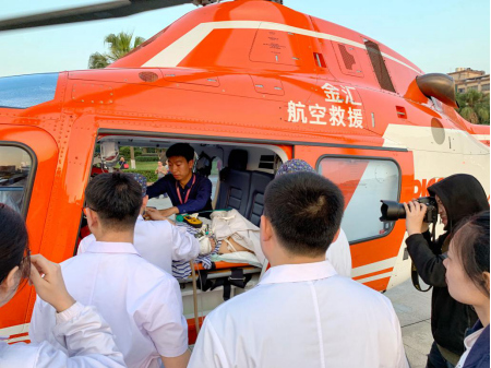 经过多日的入院治疗,蒋同学脏器功能较之前稍有好转,他的家人向当地医院提出转入中南大学湘雅医院进一步治疗的要求,由于该患者病情危重,安化县人民医院迅速启动与金汇通航及中南大学湘雅医院的多方联动机制,最终决定启用直升机实施航空转运计划。
