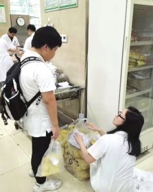 到了中午吃饭时间,科室的同仁们自然忘不了黎翔,会带他到医院食堂吃饭或者给他打好饭带到科室。因为要带回家的中药太多太重,检验科的李成龙医师自掏腰包帮他邮寄回家,还为他购买返程的火车票。