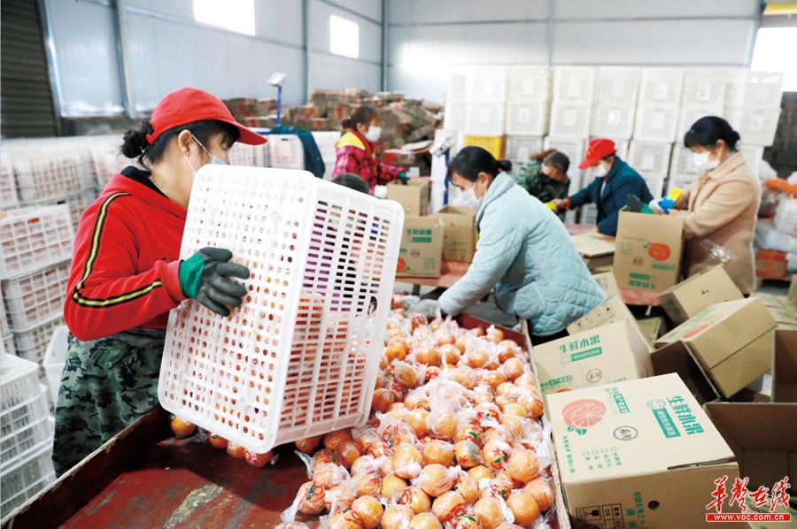 2月18日,麻阳苗族自治县三农兄弟林业发展有限公司,员工在打包柑橘,并于当天发往全国各地。春节过后,该县冰糖橙、脐橙、血橙等柑橘迎来销售小高峰,每天约有50余万公斤优质柑橘销往全国各地。张杰 摄