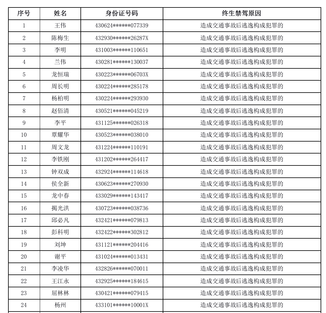 8月湖南又有45人被终生禁驾!