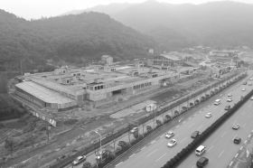 2月3日,长沙岳麓山景区西大门建设工地,西大门、停车场、游客中心和桃花岭景区连通桥的主体工程均已完成。 图/记者谢长贵
