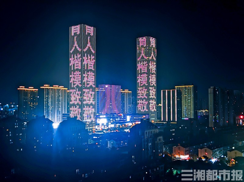 华声在线9月10日讯(三湘都市报·华声在线记者 杨斯涵 黄京 视频 顾荣 剪辑 郭文雯)“致敬教书育人楷模”!今夜,绚丽夺目的灯光秀照亮了长沙的上空。晚上8时整,长沙地标——运达中央广场灯光秀展示出一段段祝福教师的话语,不少人纷纷拿出手机拍摄,记录这一暖心时刻。