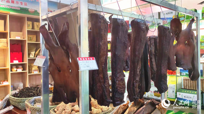 “供销货郎”益阳市运营中心出售的腊肉等农产品。人民网 刘宾摄