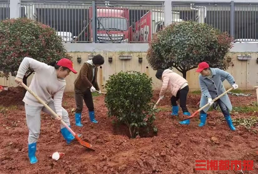 惊蛰已过,万物复苏。3月11日下午,在浏阳市永安镇植树基地,处处是忙碌的身影,大家三两一组,手持锄头、铁锹等工具,或铲土入坑、或扶苗培土……春日暖阳中,整个现场充满生机活力,大家配合默契,欢声笑语不断。经过大家的努力,共同种下161株金丝楠木、桂花树等幼苗,一棵棵新栽种的树苗连排成行,呈现一片欣欣向荣的景象。