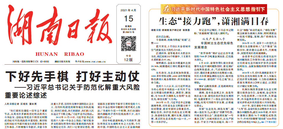 (2021年4月15日,湖南日报头版《在习近平新时代中国特色社会主义思想指引下》专栏报道)