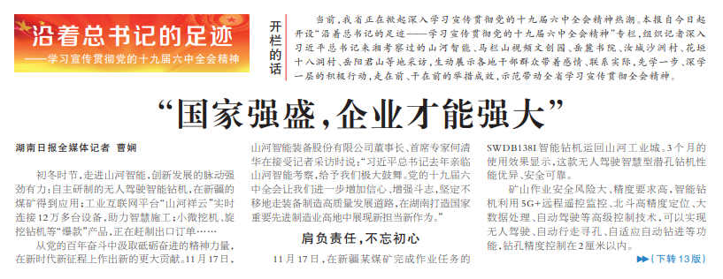 (2021年11月18日,湖南日报头版《沿着总书记的足迹——学习宣传贯彻党的十九届六中全会精神》专栏报道)