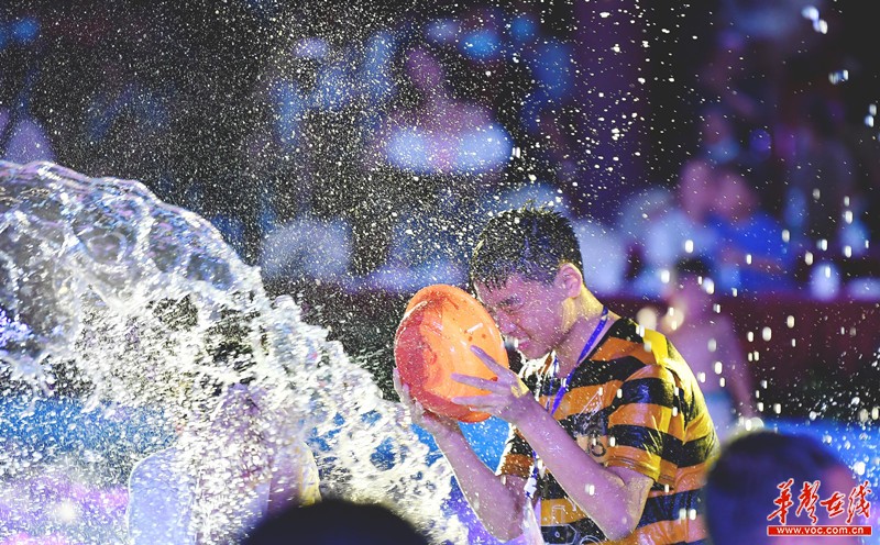 ▲7月22日晚,游客在泼水狂欢。当天,2022张家界第五届万福温泉泼水节在慈利县万福温泉开幕。